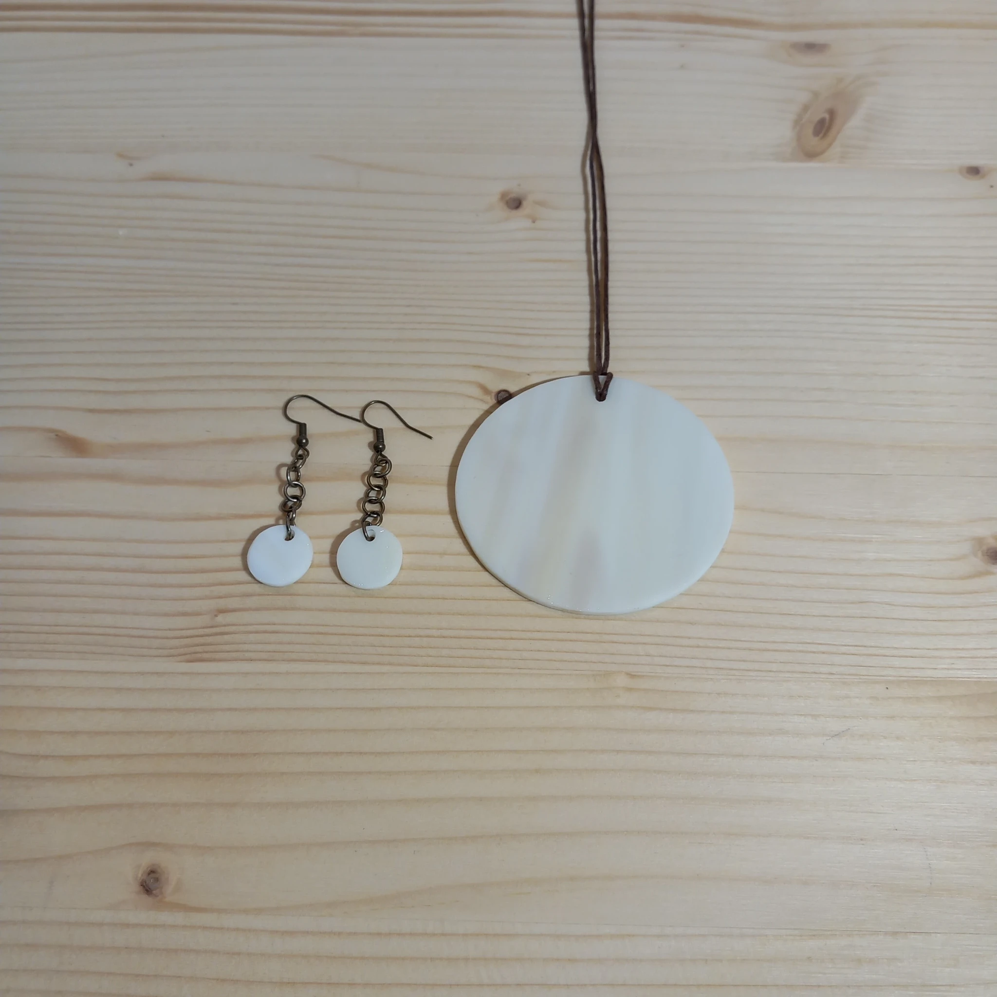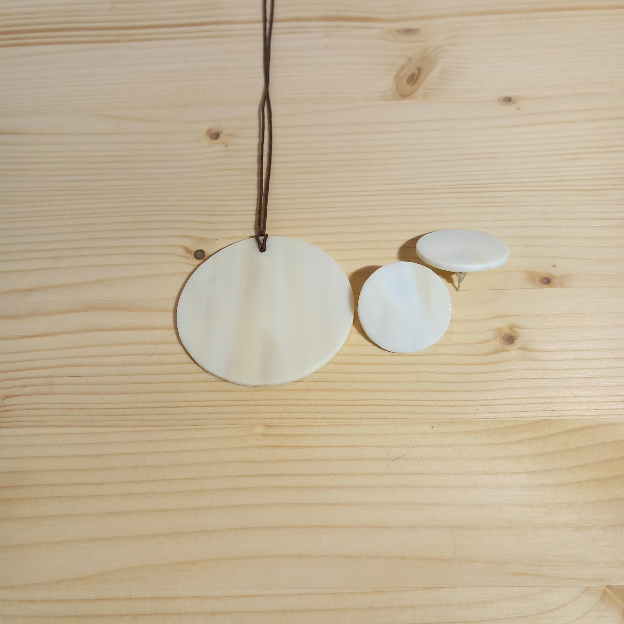 Ehtekomplekti kuuluvad läbipaistmatust kerge beeži varjundiga valgest klaasist suur ümmargune kaelaehe ning valikuliselt üks paar kõrvarõngaid.