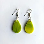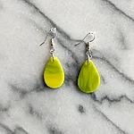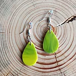 Rohekas-kollasest klaasist tilgakujulised kõrvarõngad hõbedaste kõrvarõngakonksudega.