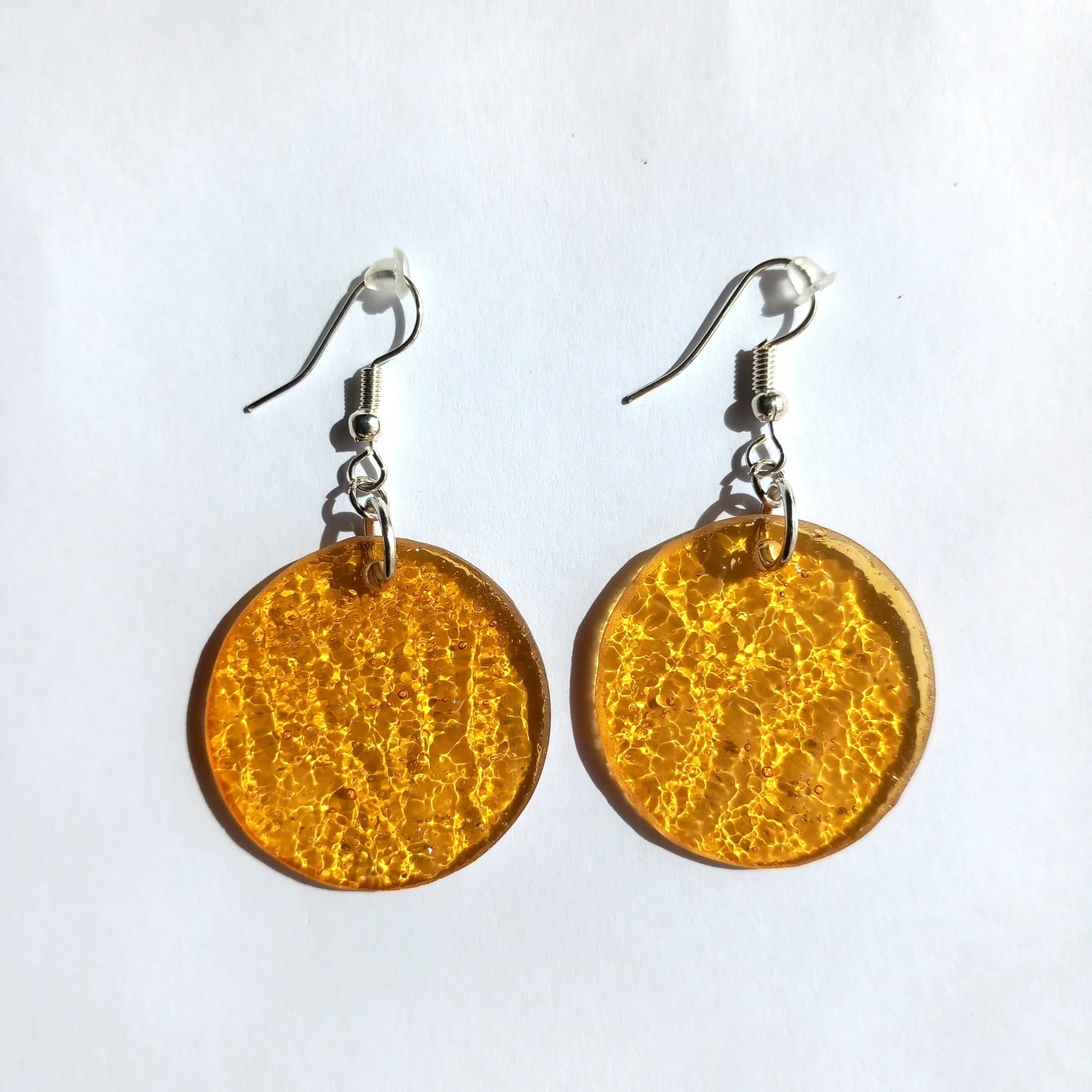 Kollasest klaasist kõrvarõngad hõbedakarva kõrvarõngakonksudega.