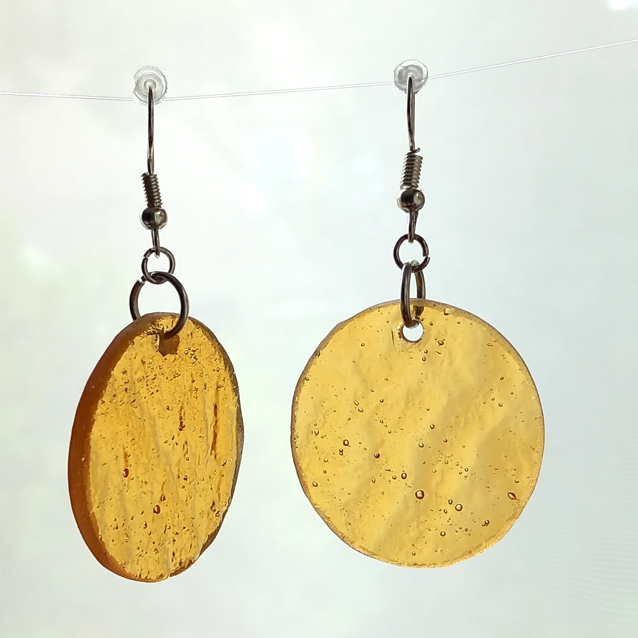 Kõrvarõngad on käsitsi klaasist lõigatud ja lihvitud.