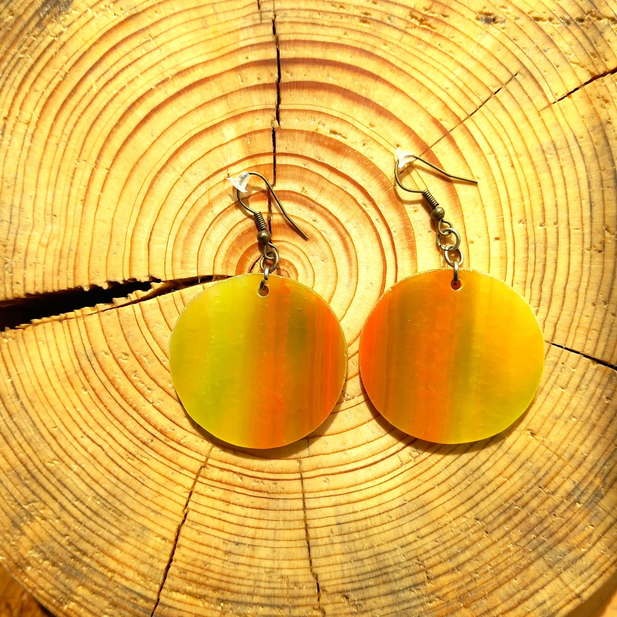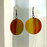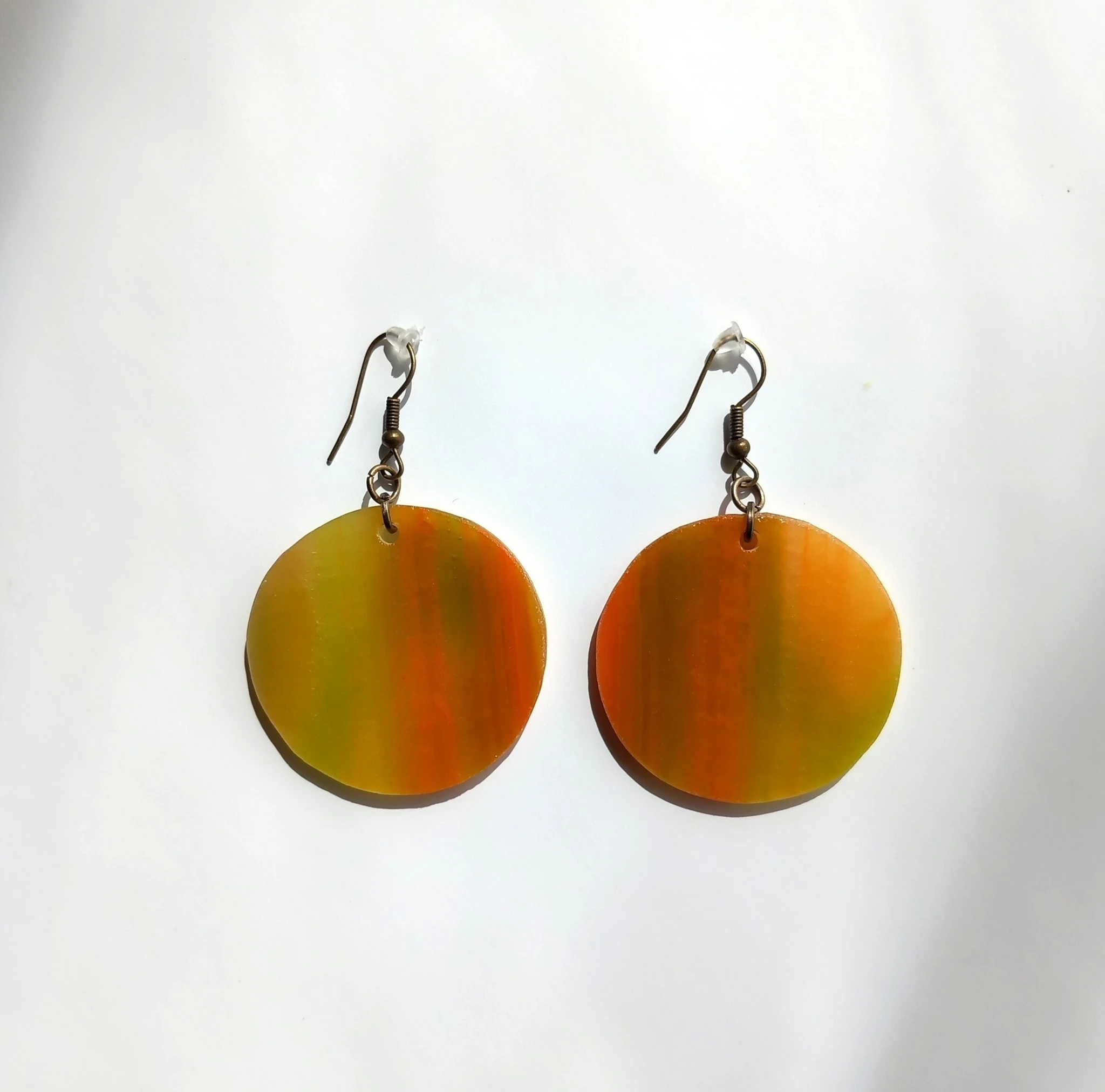 Oranžist klaasist ümmargused kõrvarõngad vasekarva kõrvarõngakonksudega.
