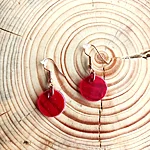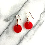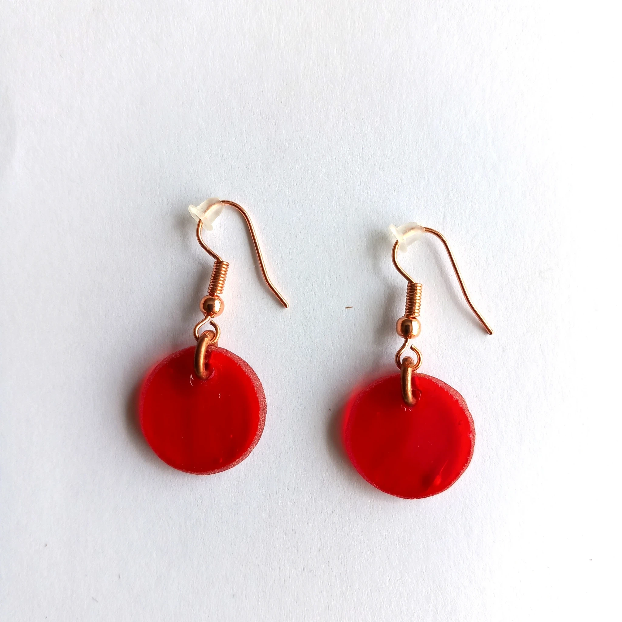Punasest klaasist kõrvarõngad vasekarva kõrvarõngakonksudega.