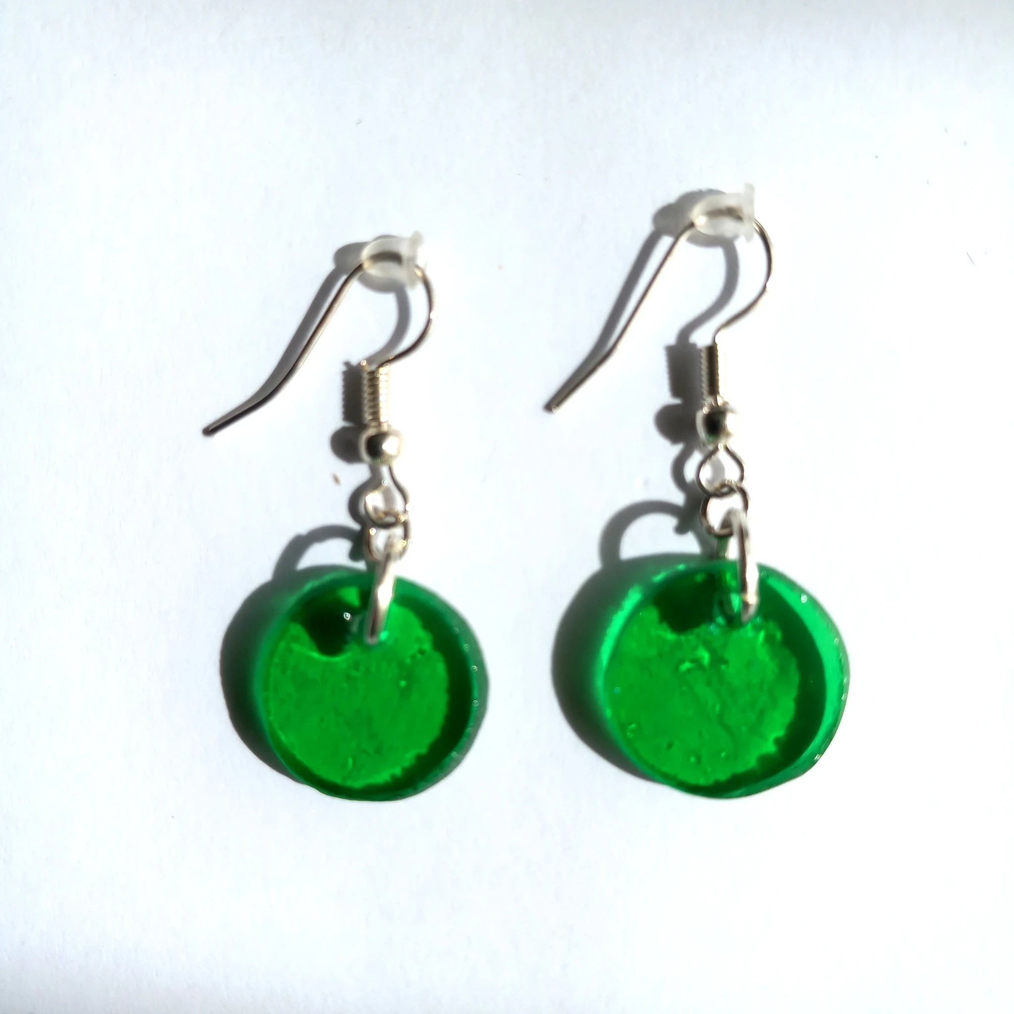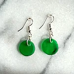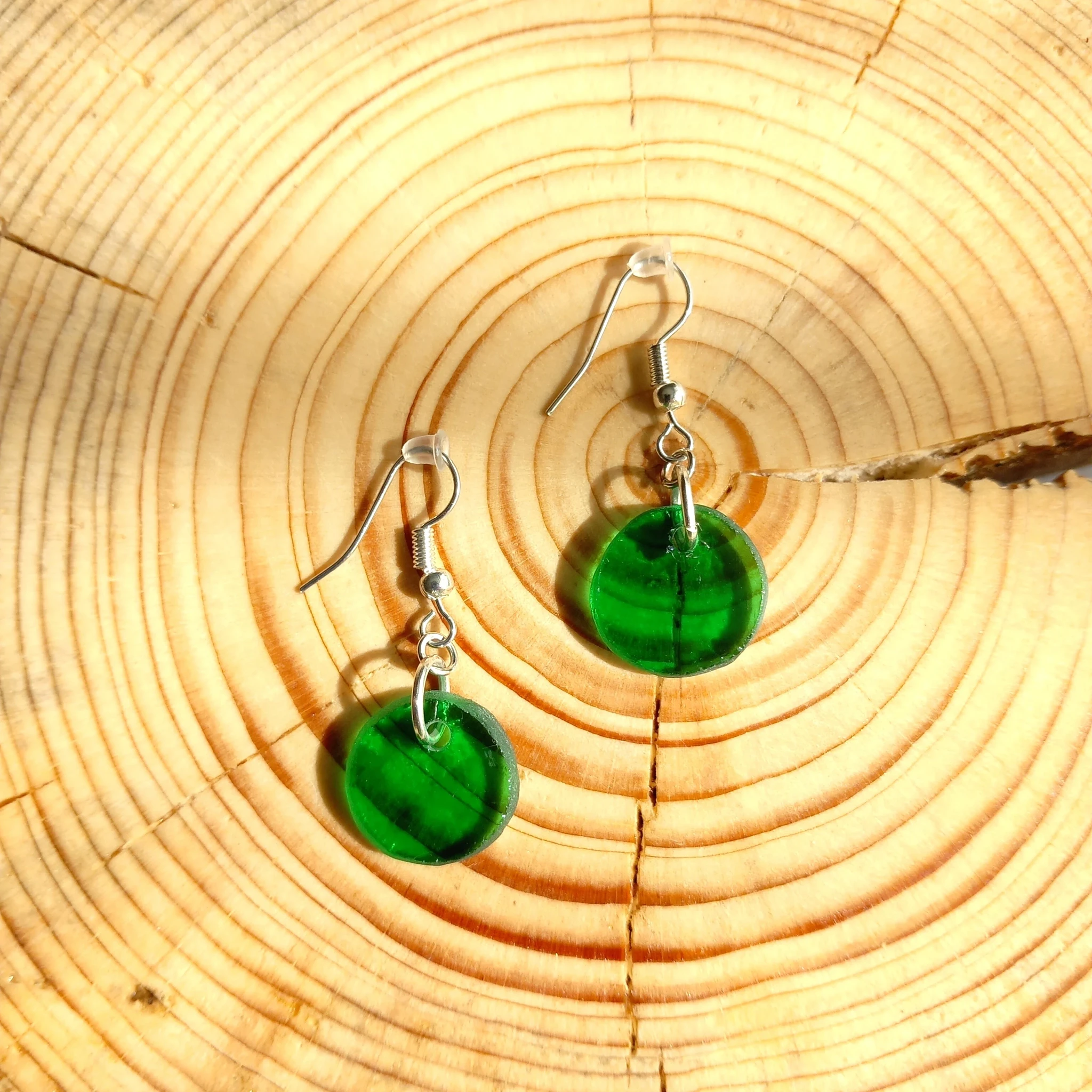 Rohelisest klaasist kõrvarõngad hõbedakarva kõrvarõngakonksudega.