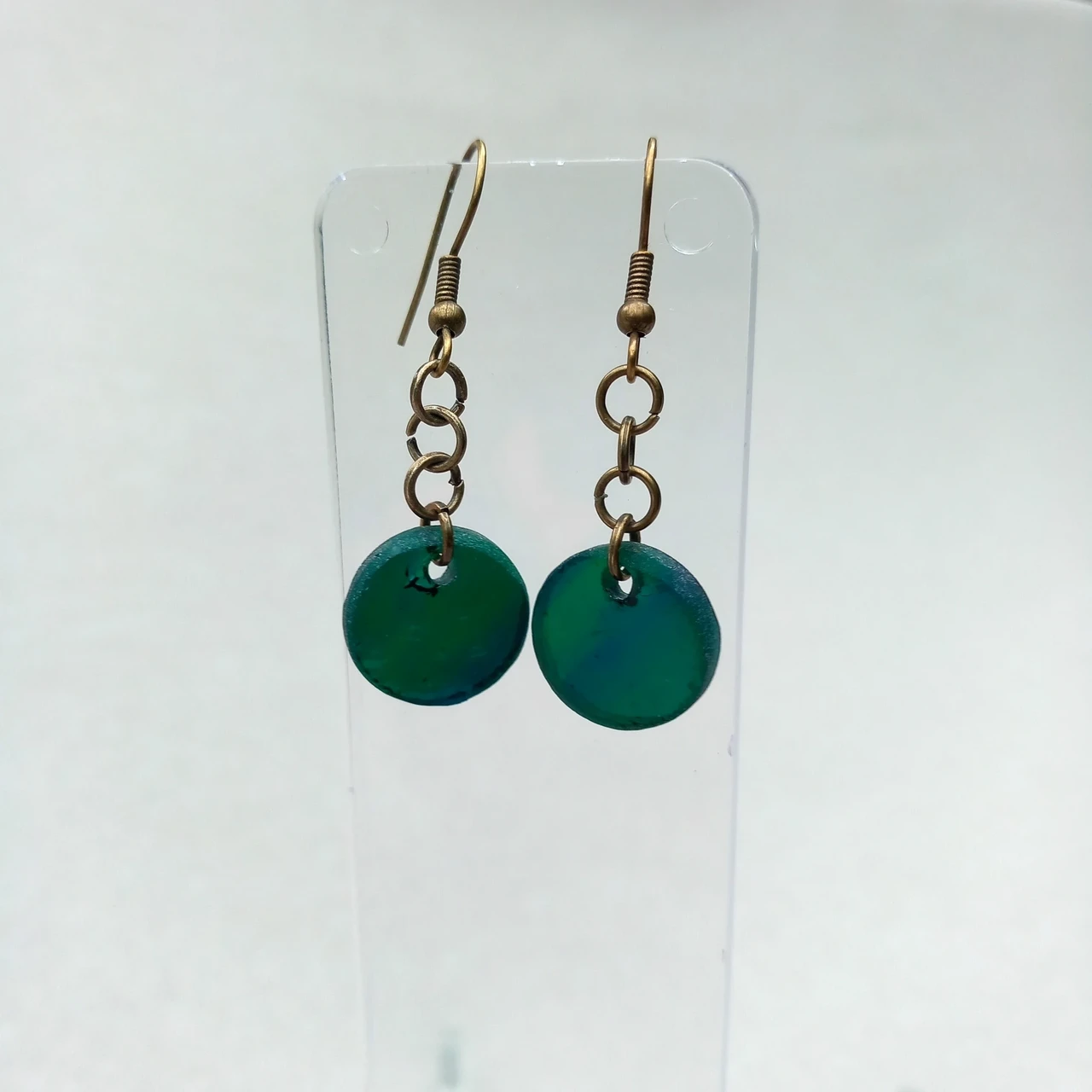Rohelisest klaasist kõrvarõngad pronksikarva kõrvarõngakonksudega.