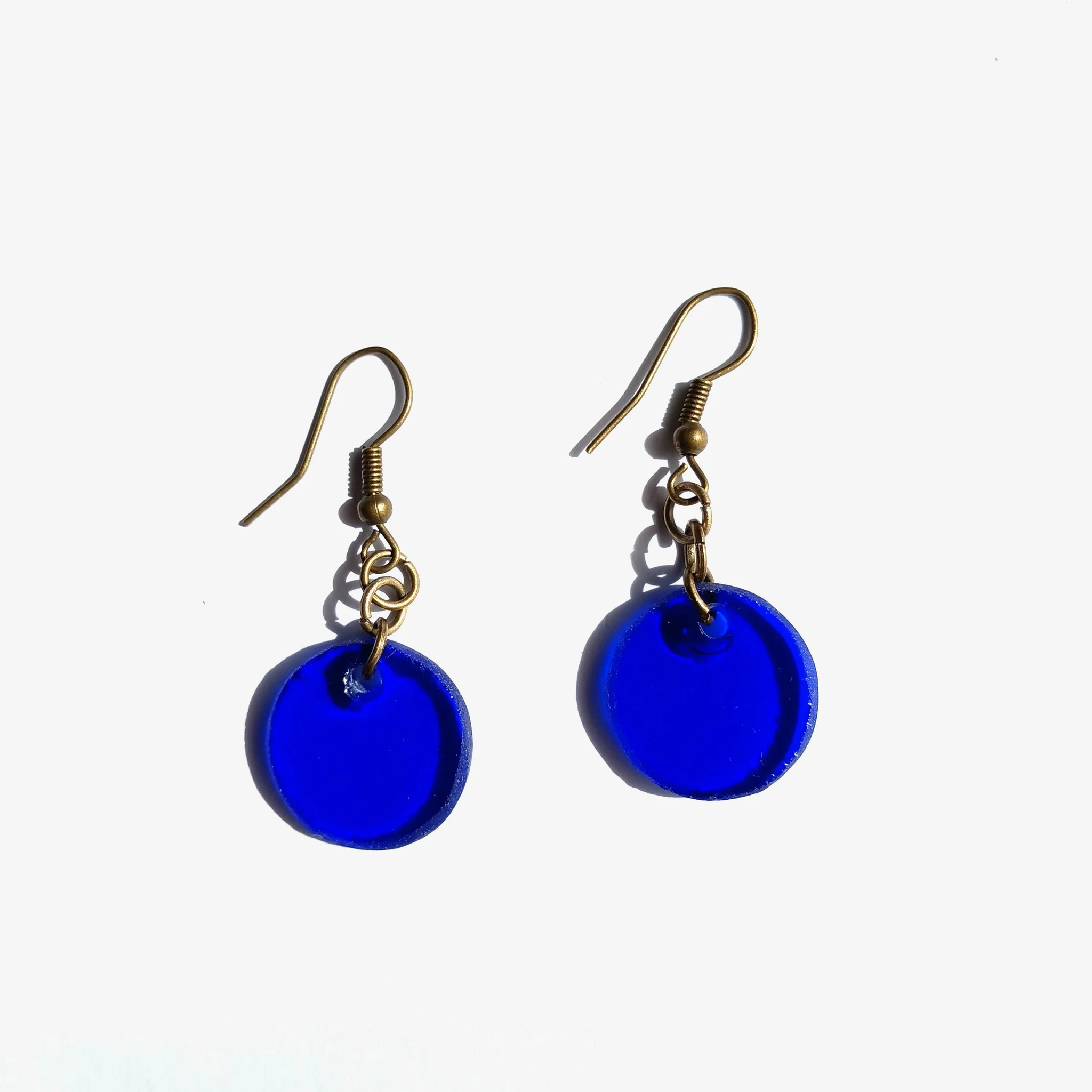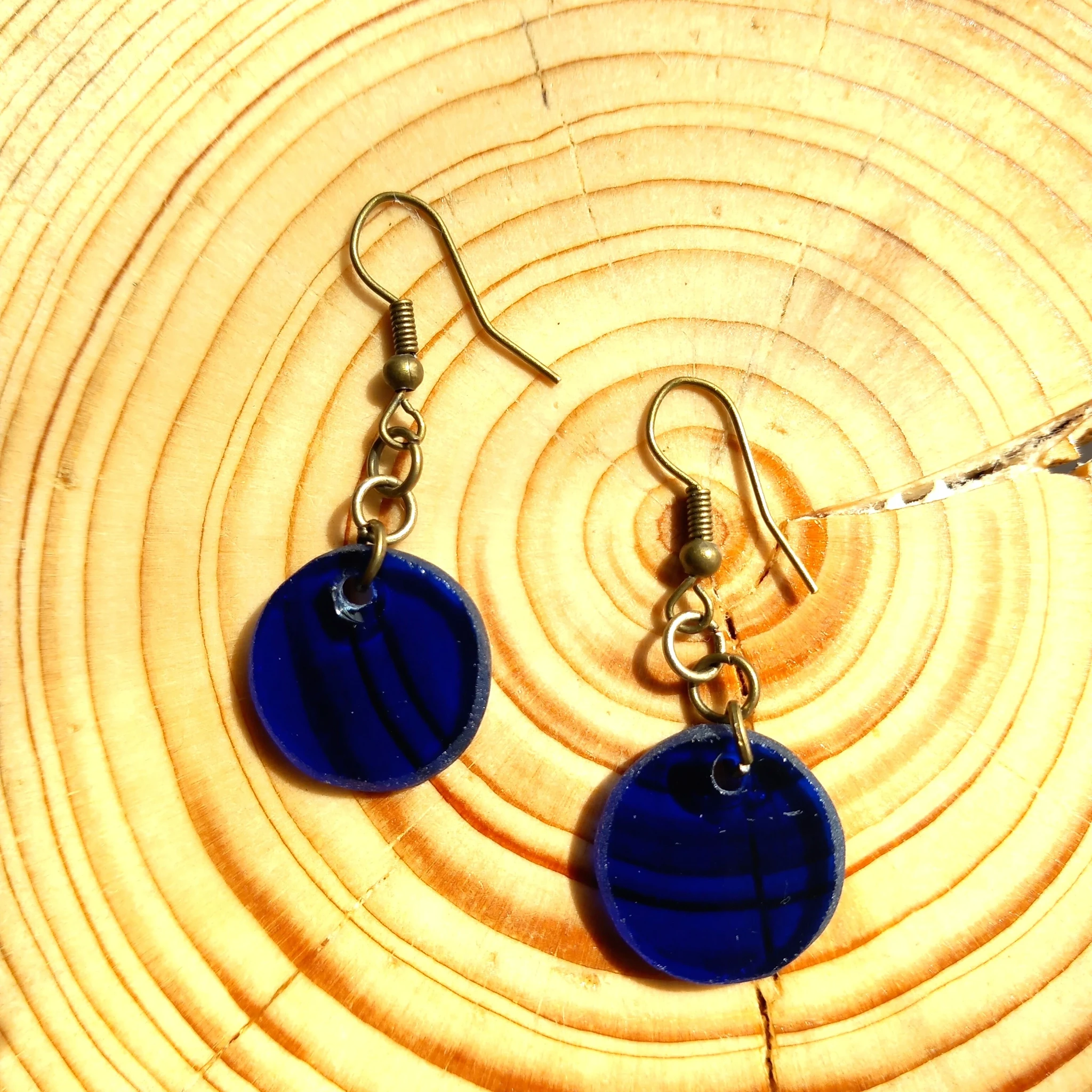 Sinisest klaasist kõrvarõngad pronksikarva kõrvarõngakonksudega.