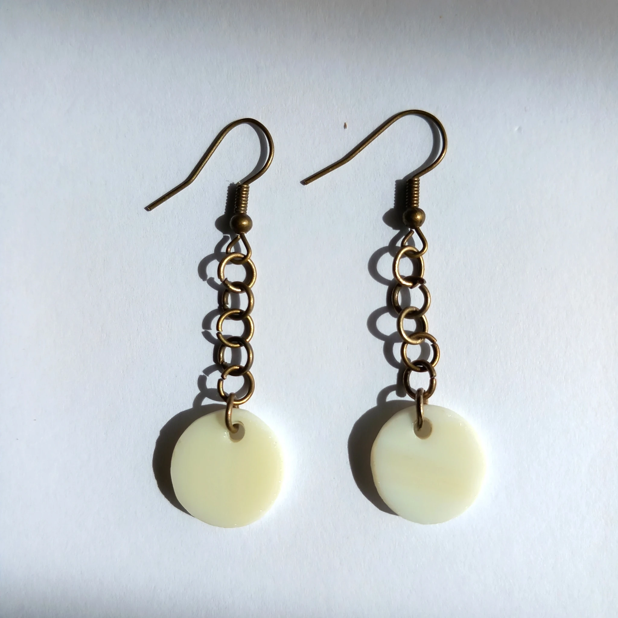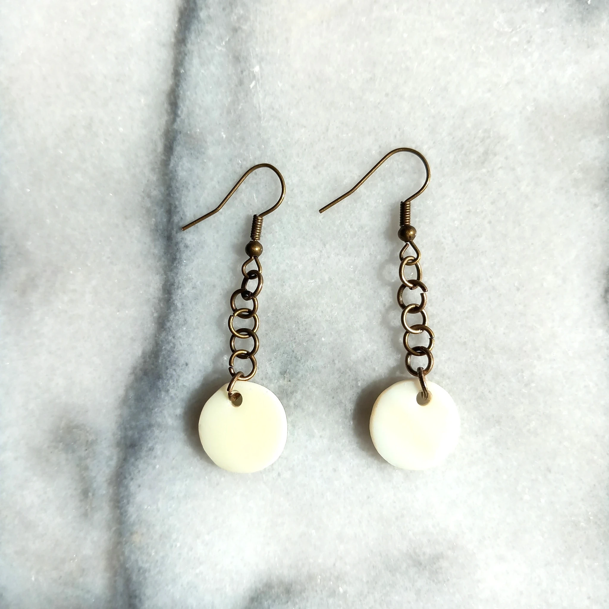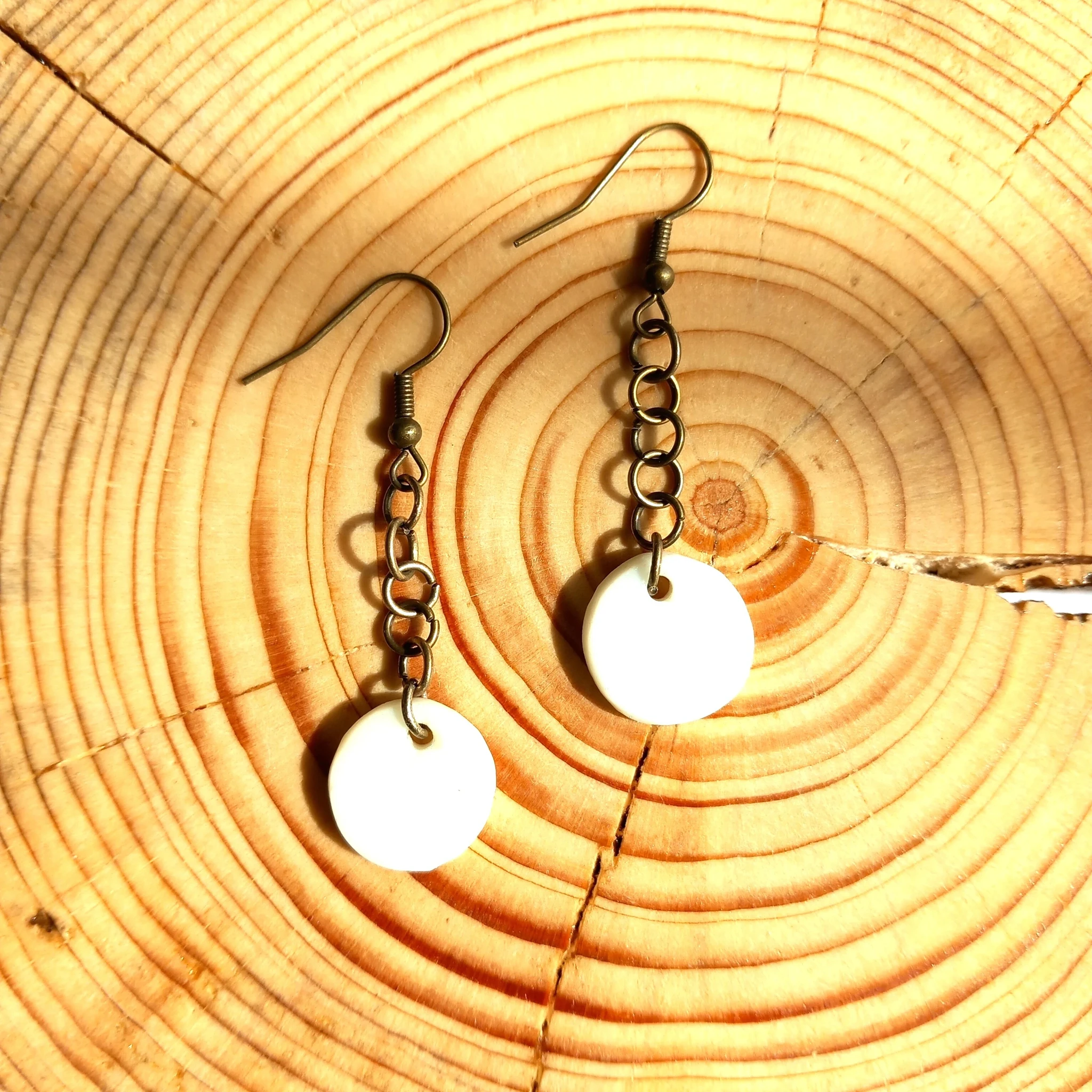 Valgest klaasist kõrvarõngad pronksikarvakarva kõrvarõngakonksudega.