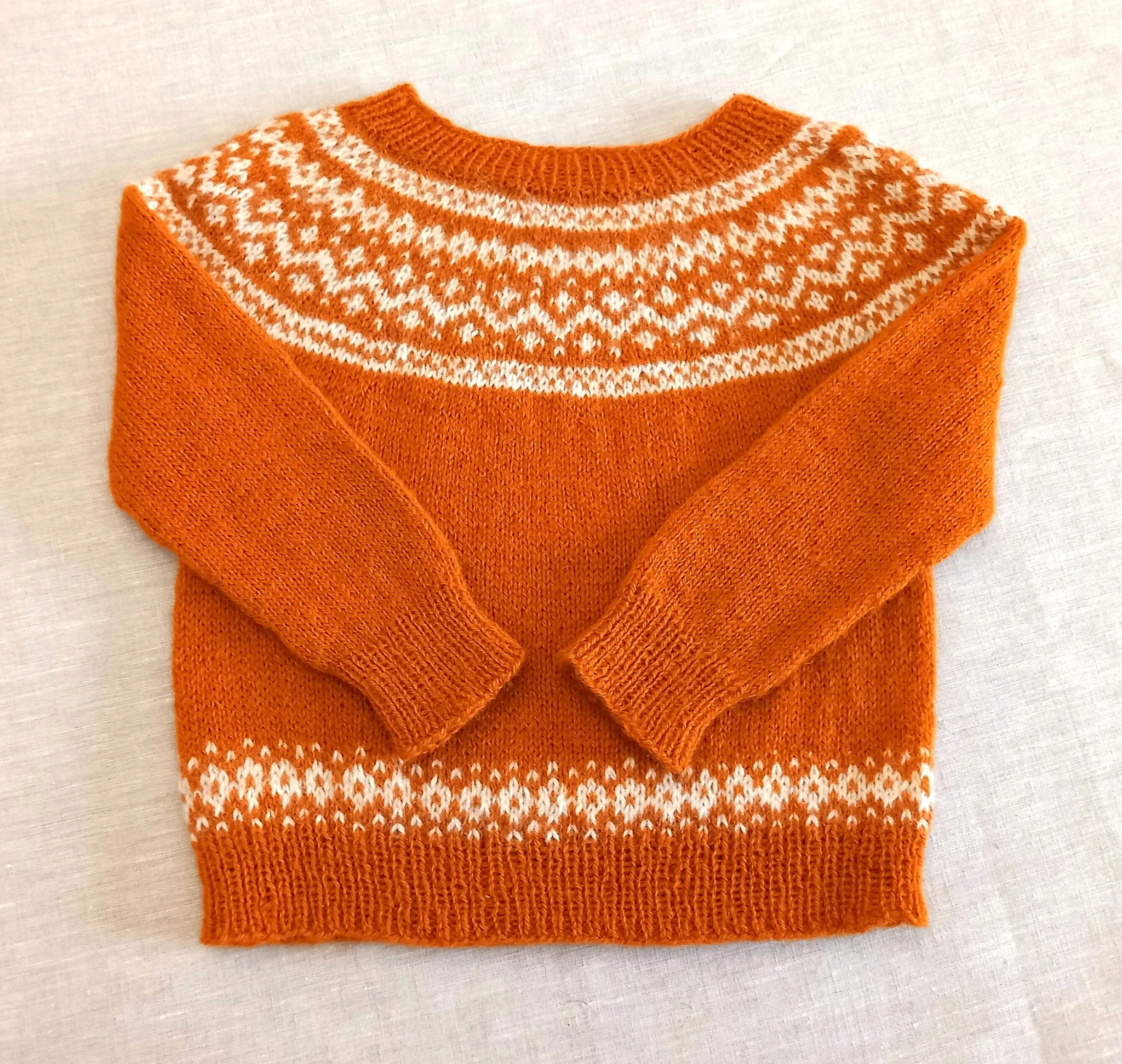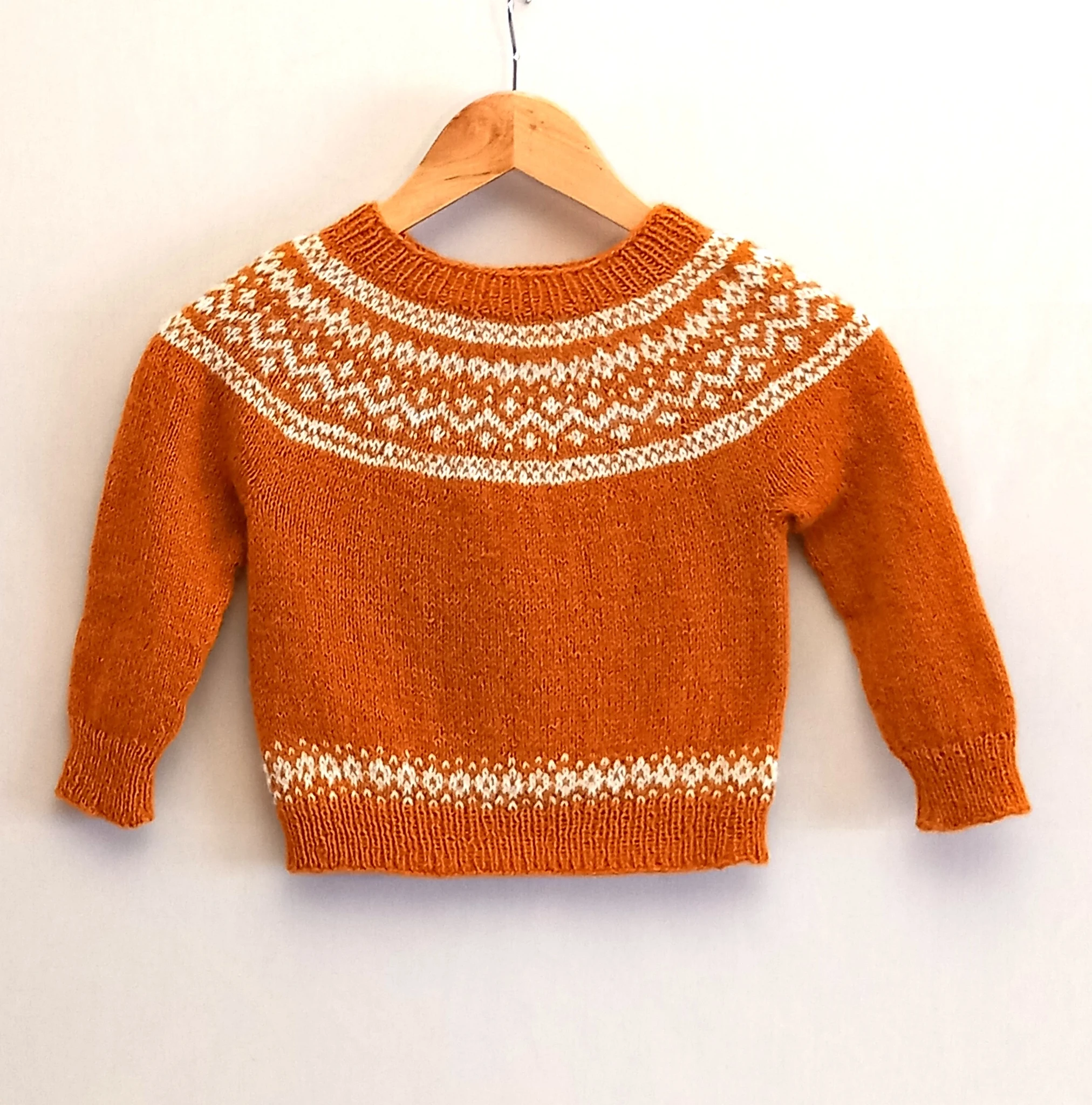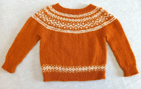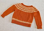 Oranž valge mustriga kampsun 3-4-aastasele (pikkus 98-104cm) lapsele.
