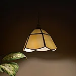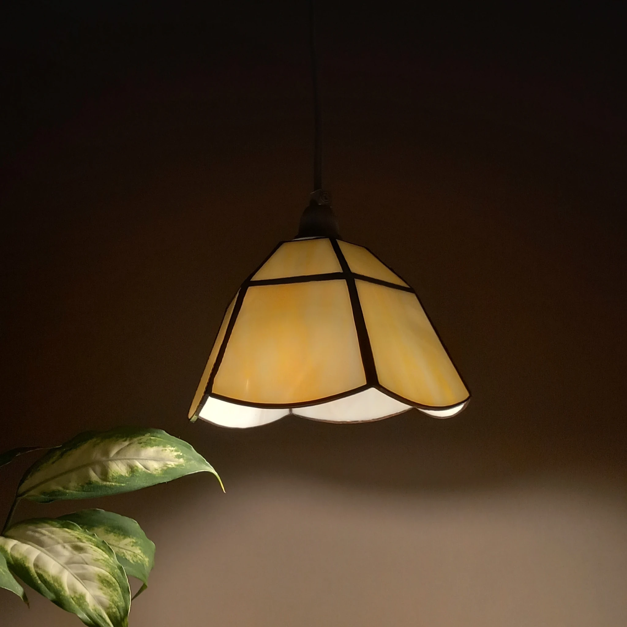 Lamp on valmistatud tiffany stiilis, selle kõrgus on 11 cm, ülaserva laius 6,5 cm, allääre laius 18 cm.