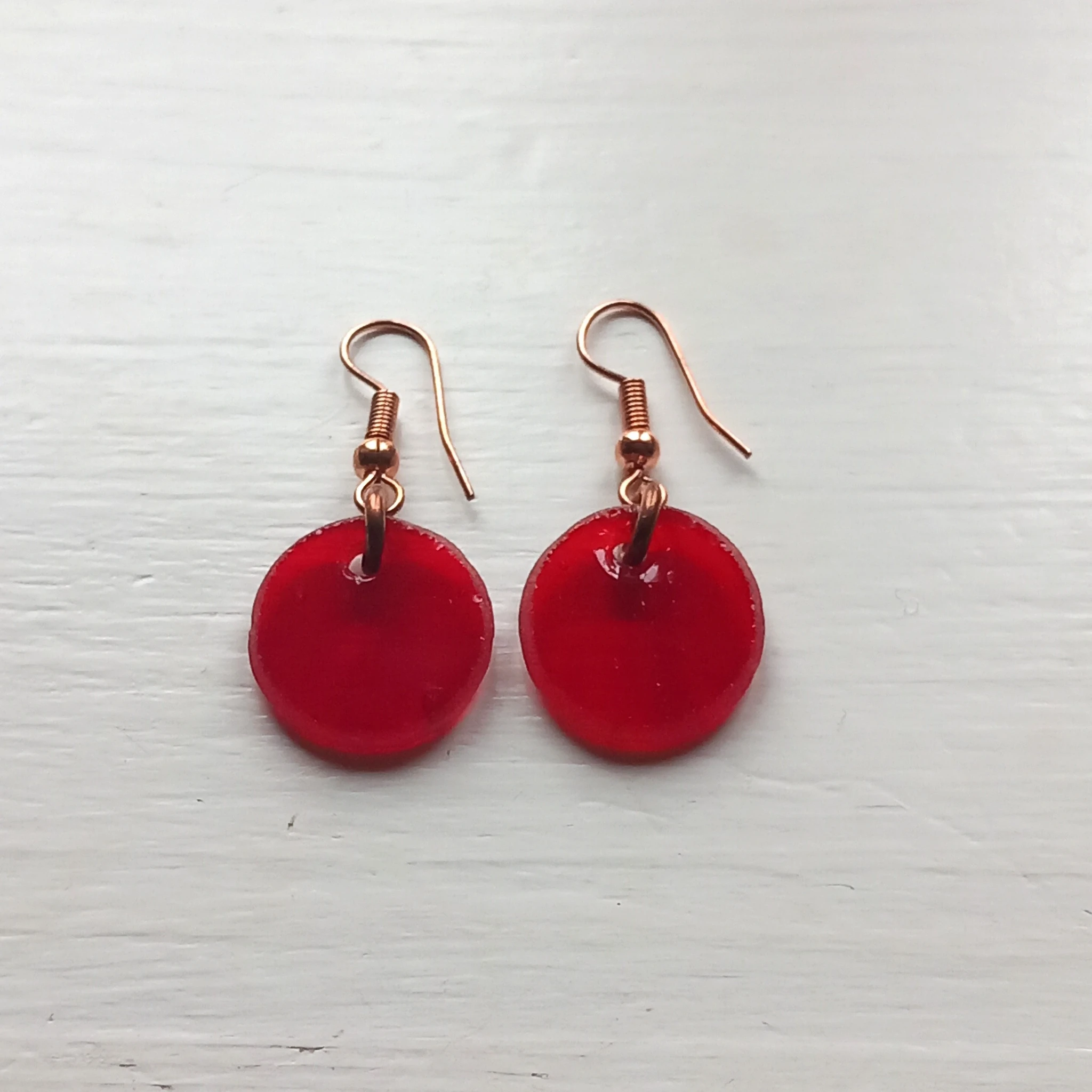 Ehtekomplektis on punasest läbipaistmatust klaasist kaelaehe ja väikesed kõrvarõngad.