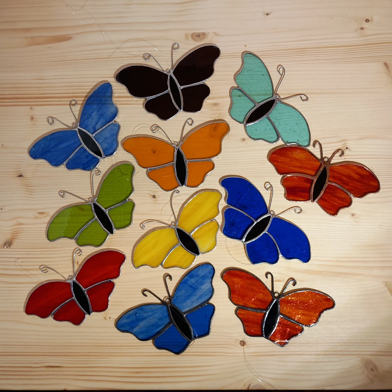 Värvilisest klaasist liblikad on valmistatud tiffany stiilis: