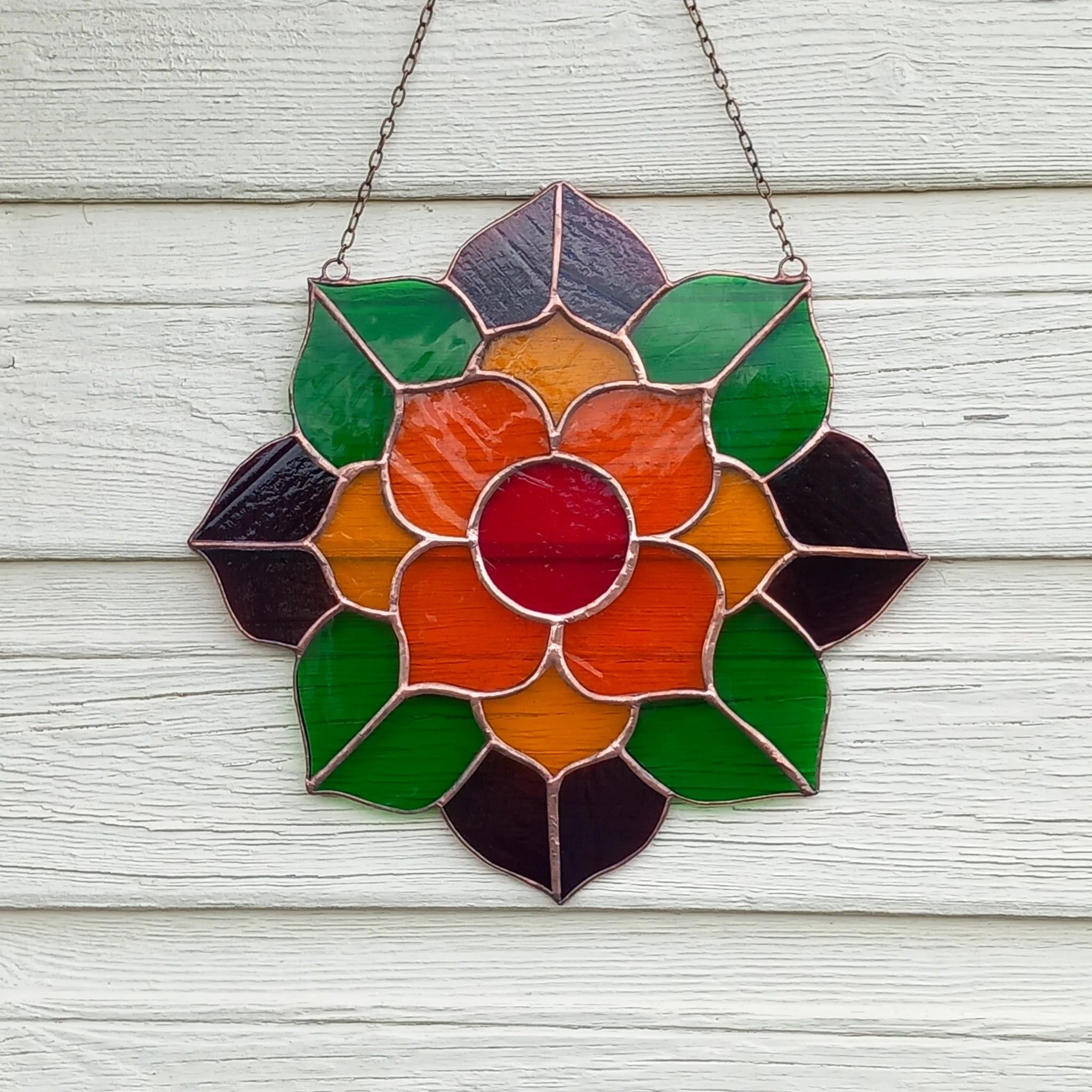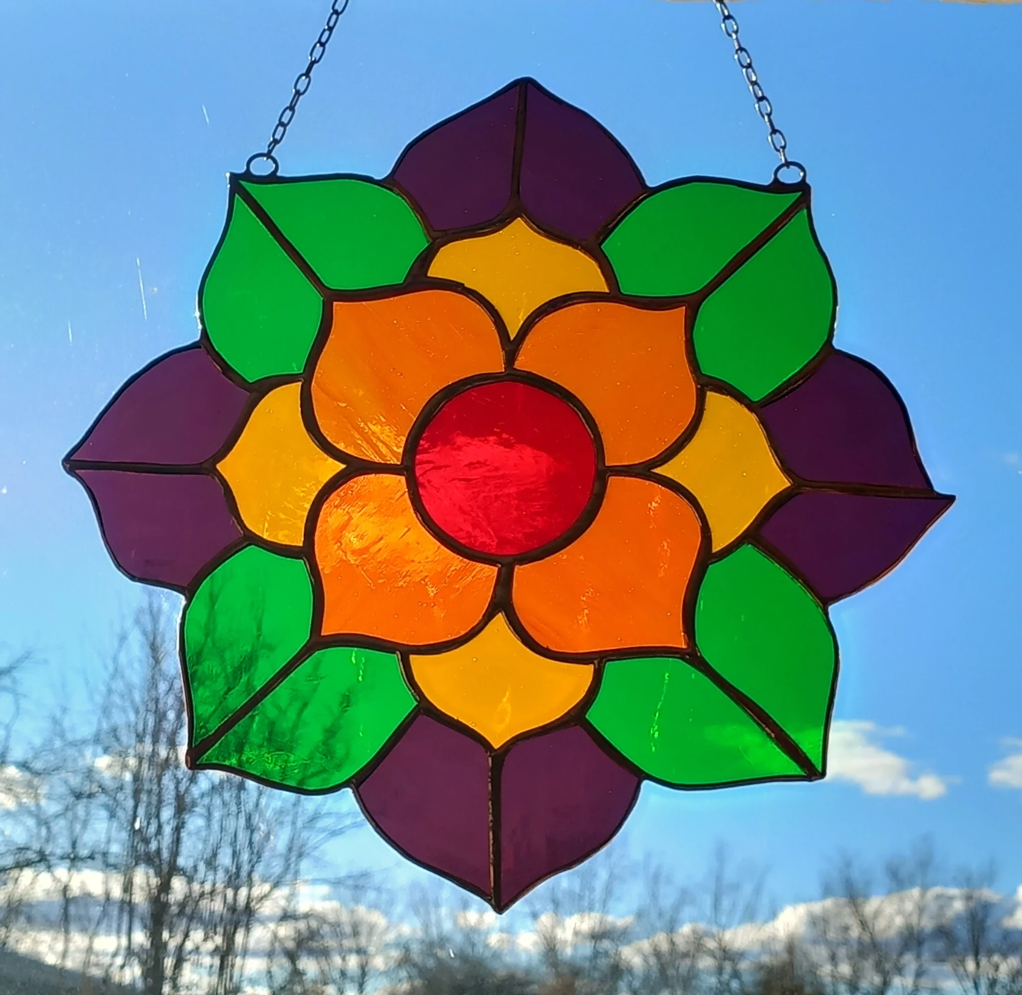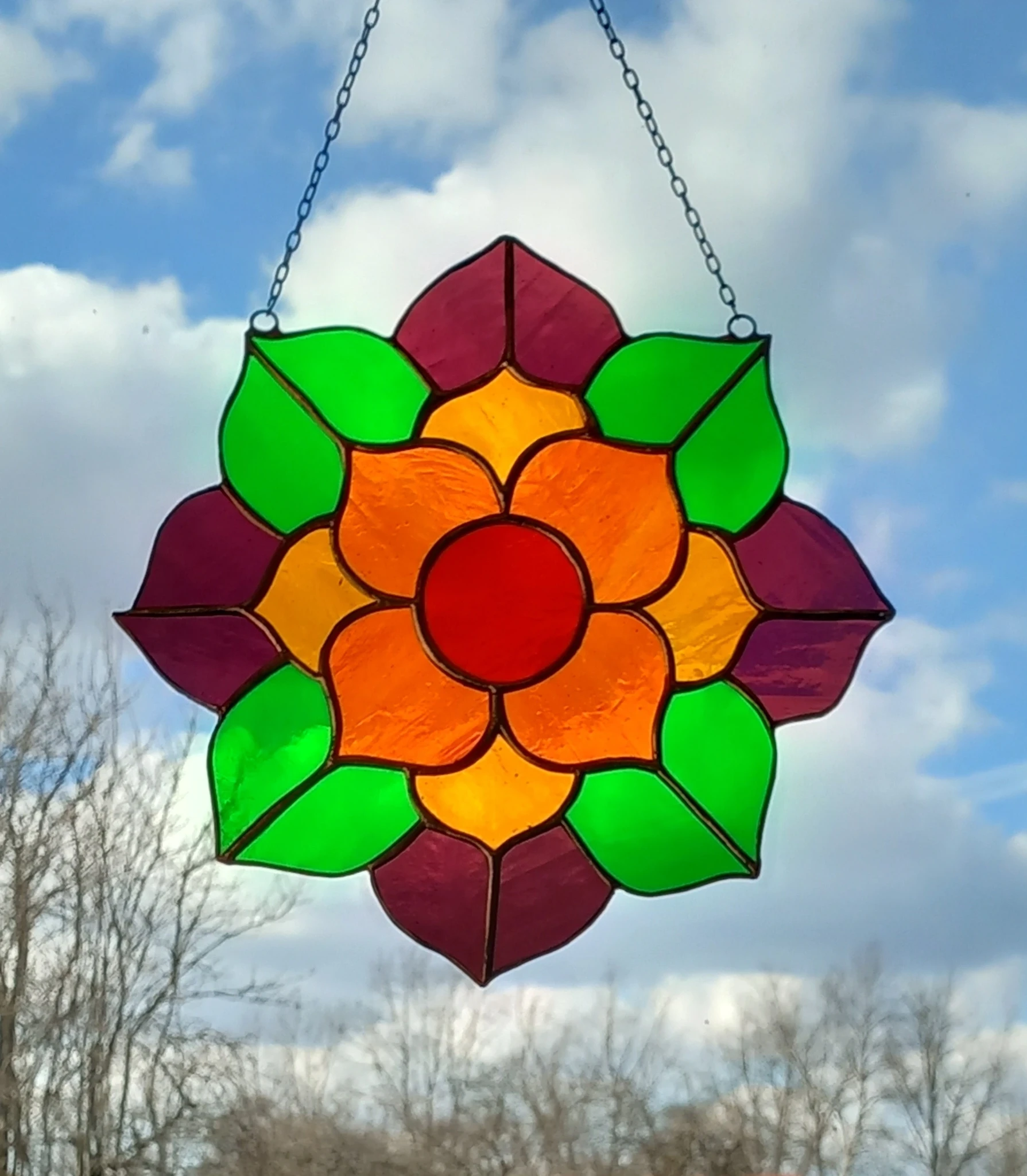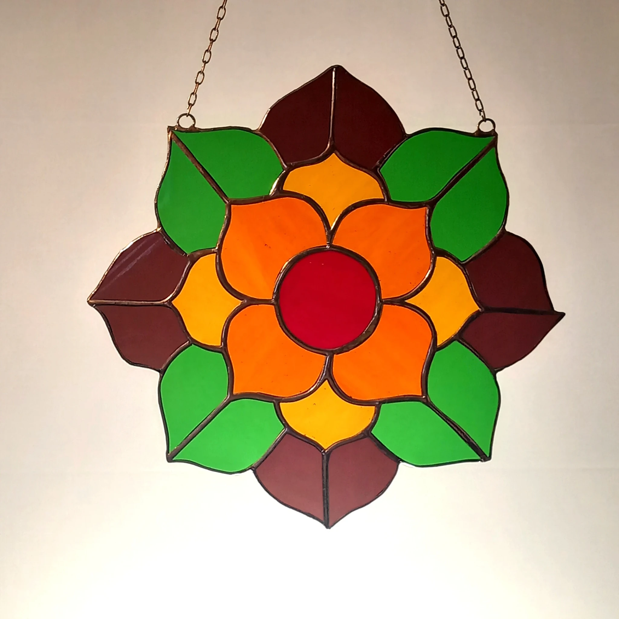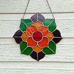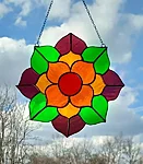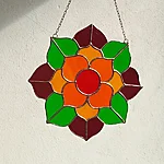 Materjal: värviline klaas, jootetina, vaskpaatina, kaasas riputuskett