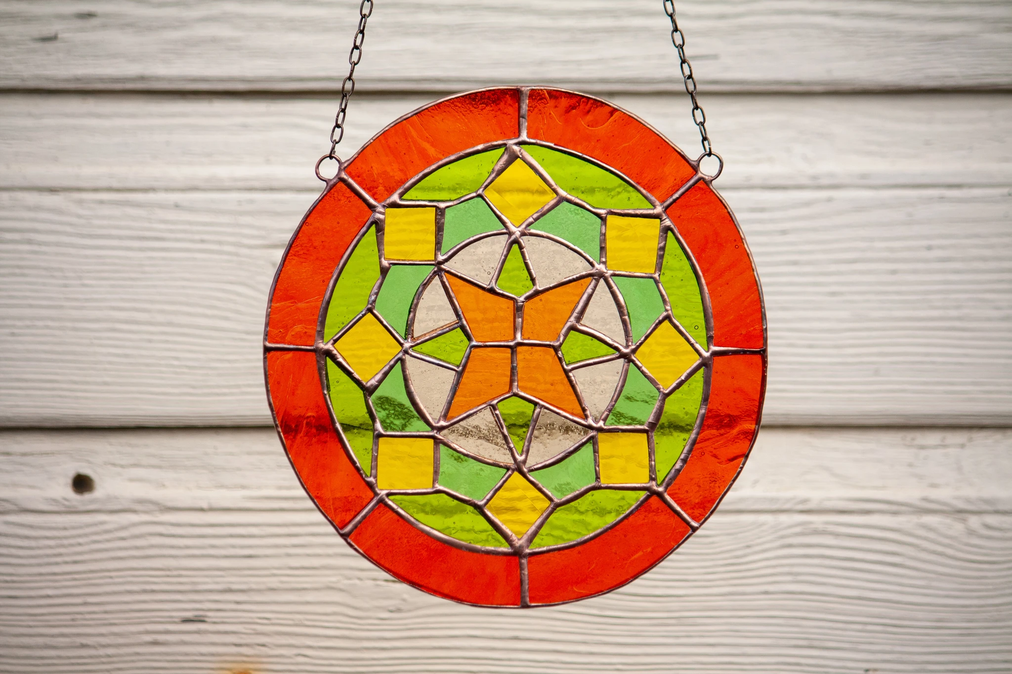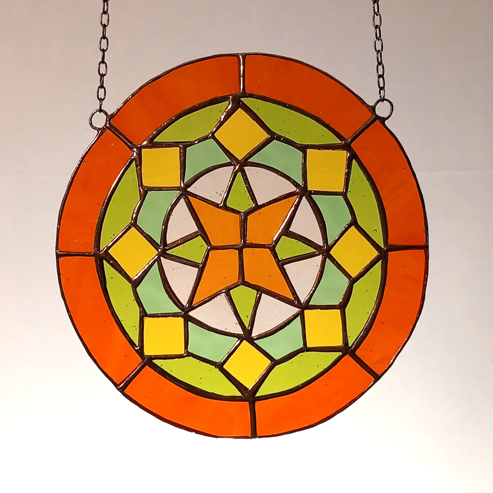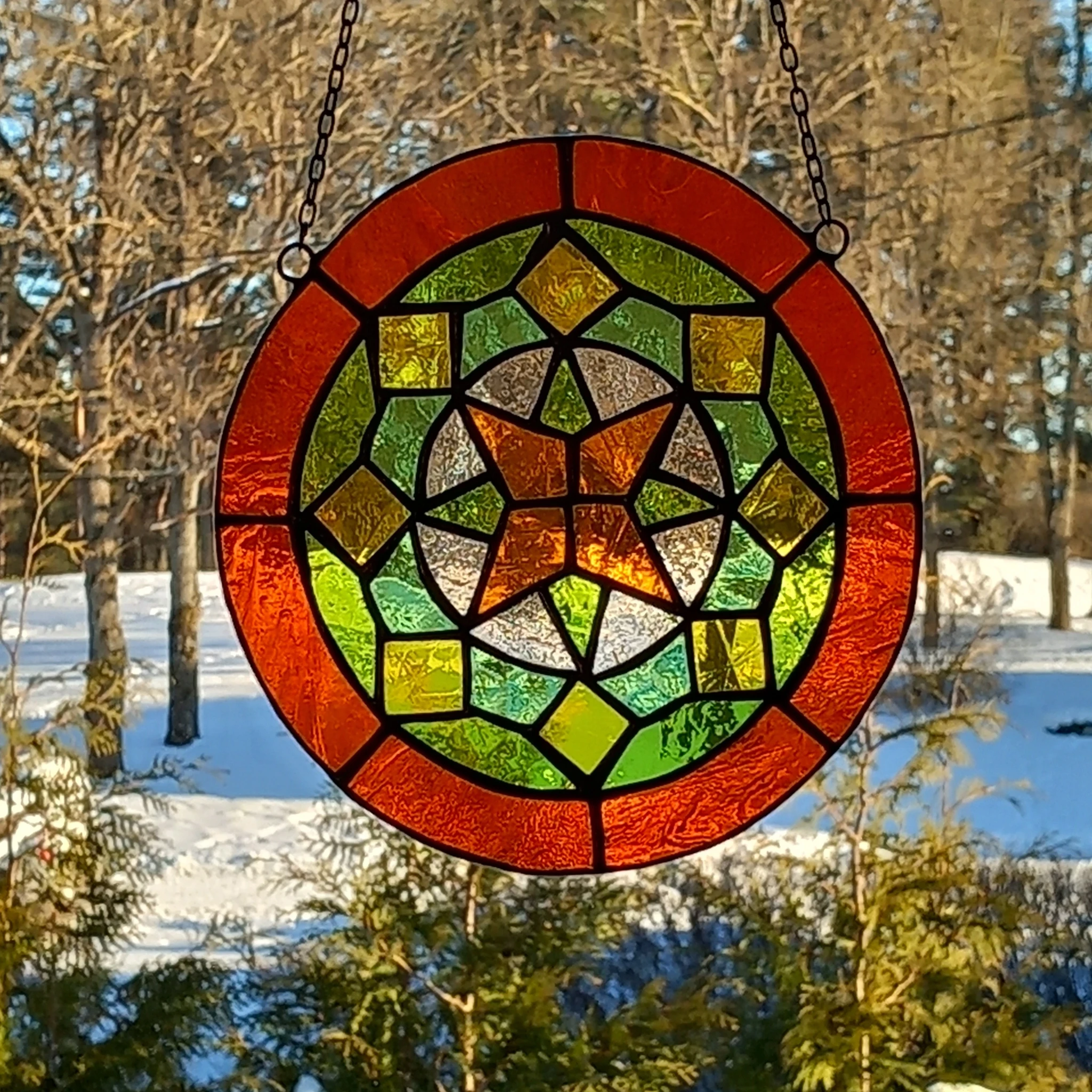 Materjal: värviline klaas, jootetina, vaskpaatina,