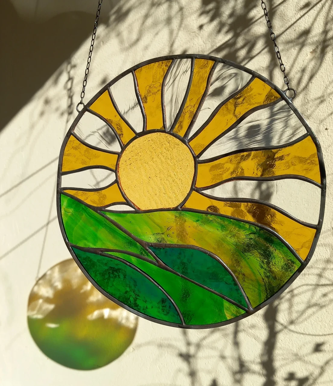 Materjal: värviline klaas, jootetina, tinaprofiil, must paatina, kaasas riputuskett