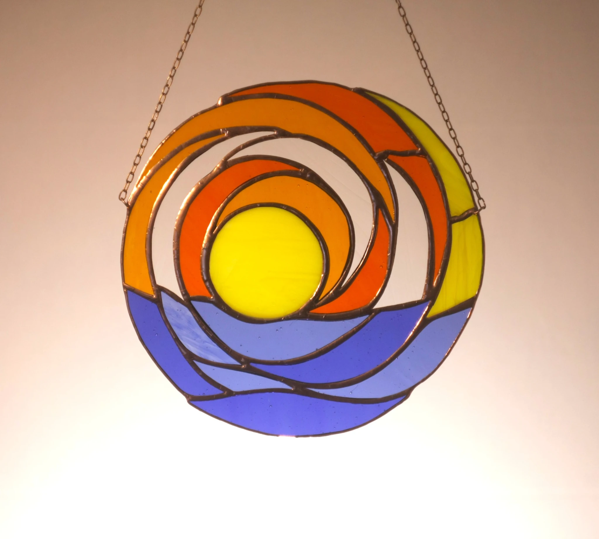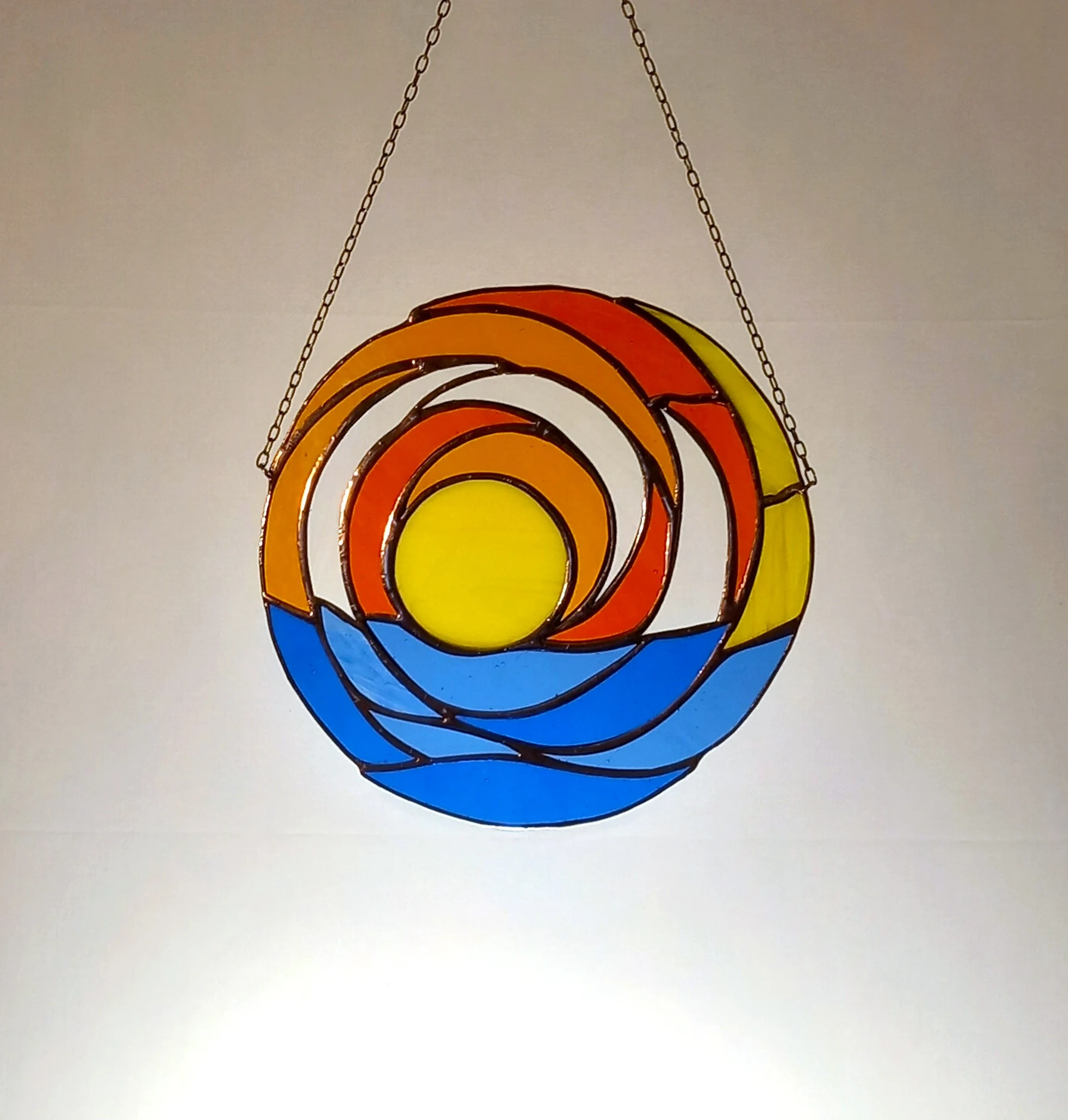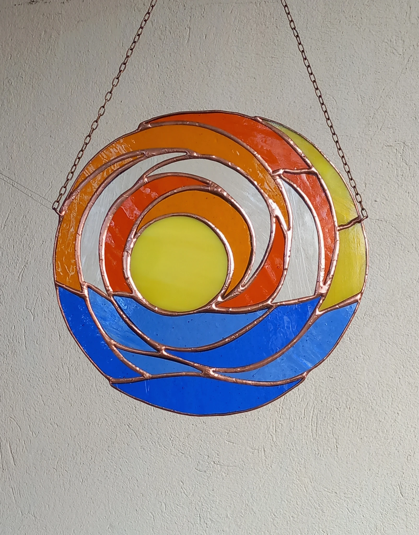 Materjal: värviline klaas, jootetina, vaskpaatina, kaasas riputuskett