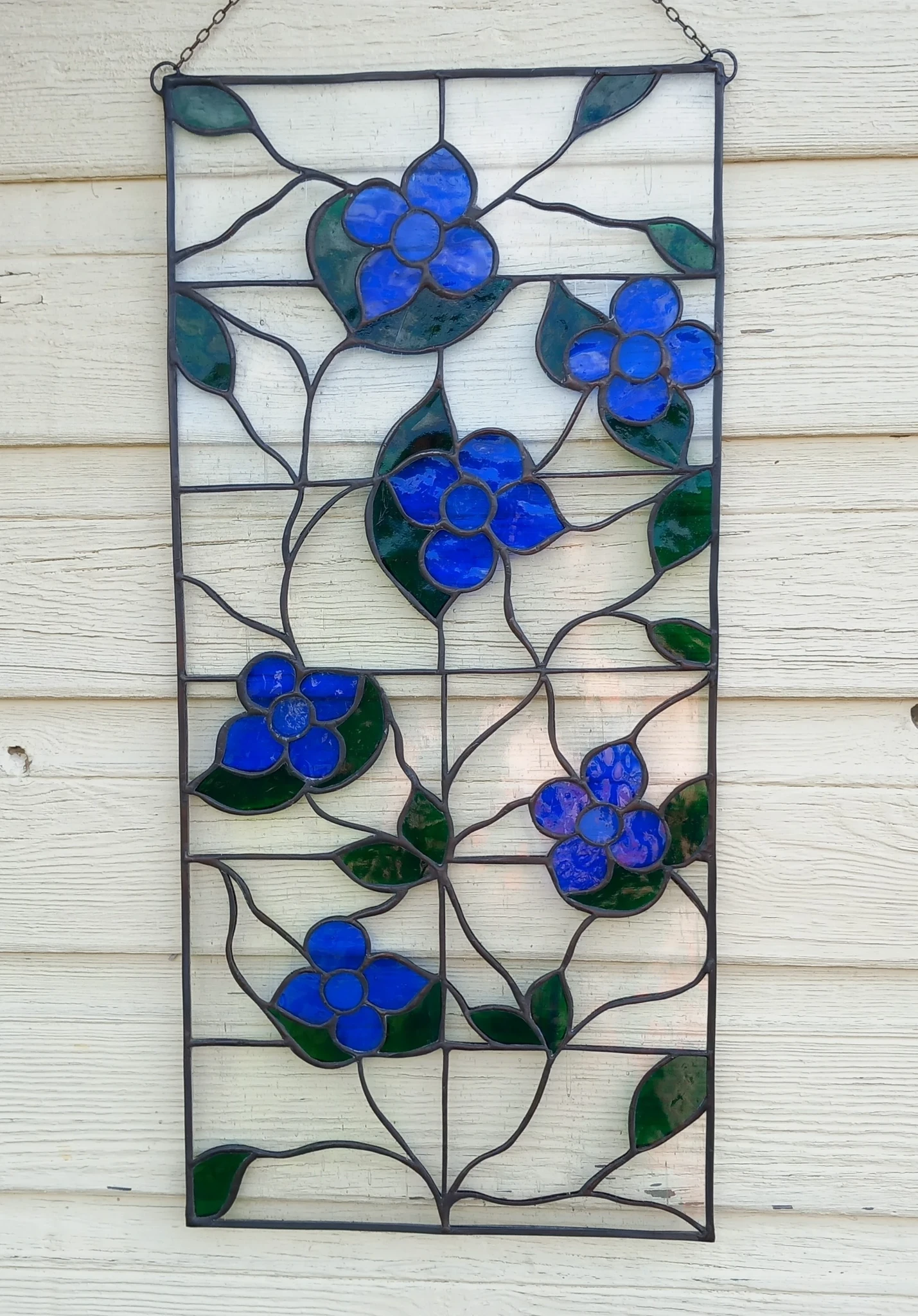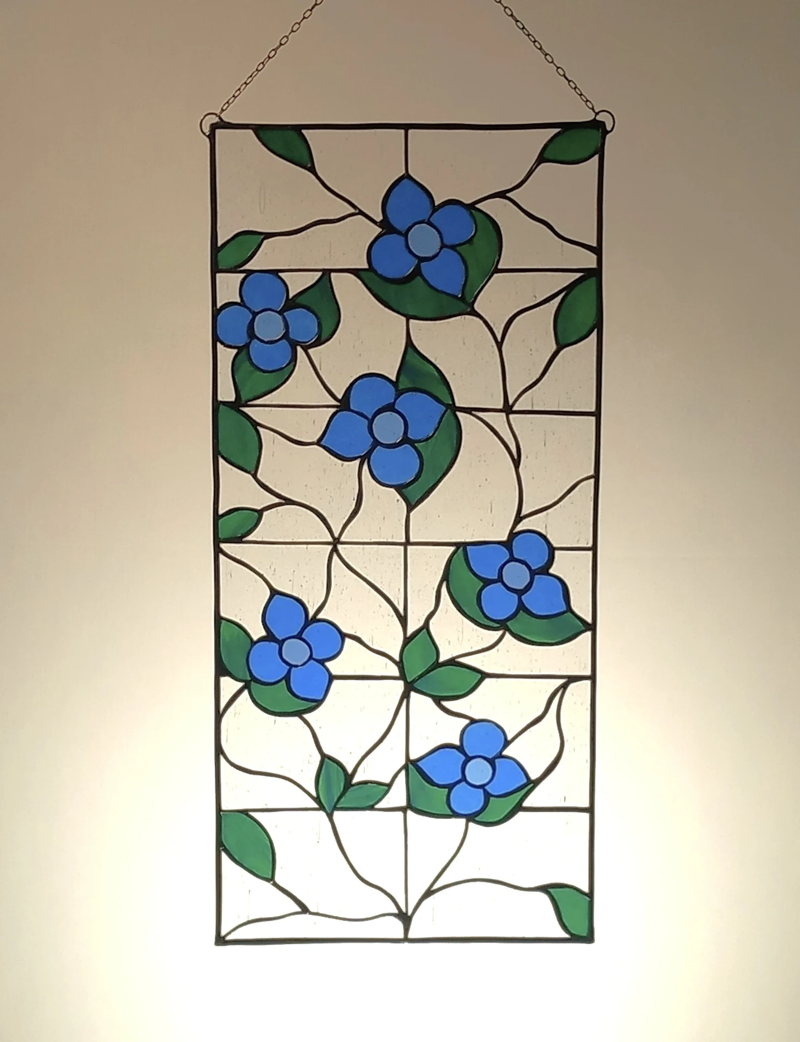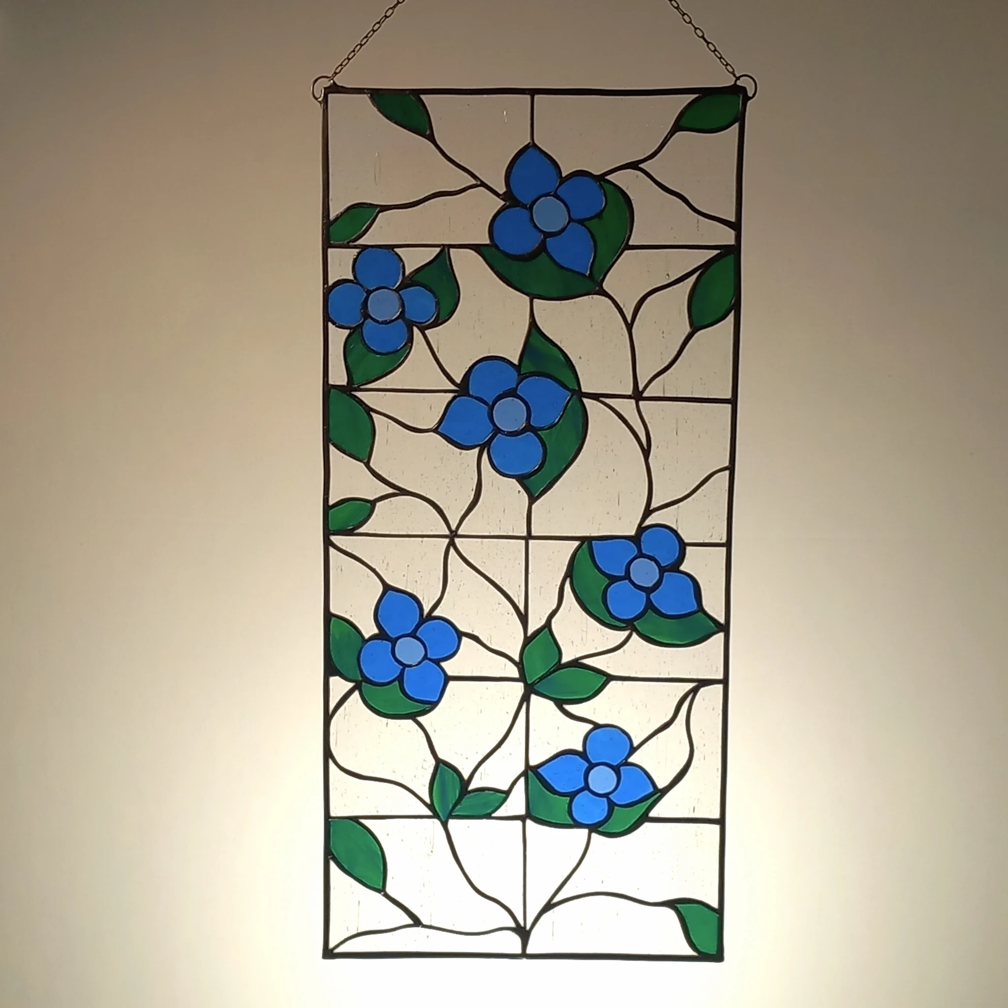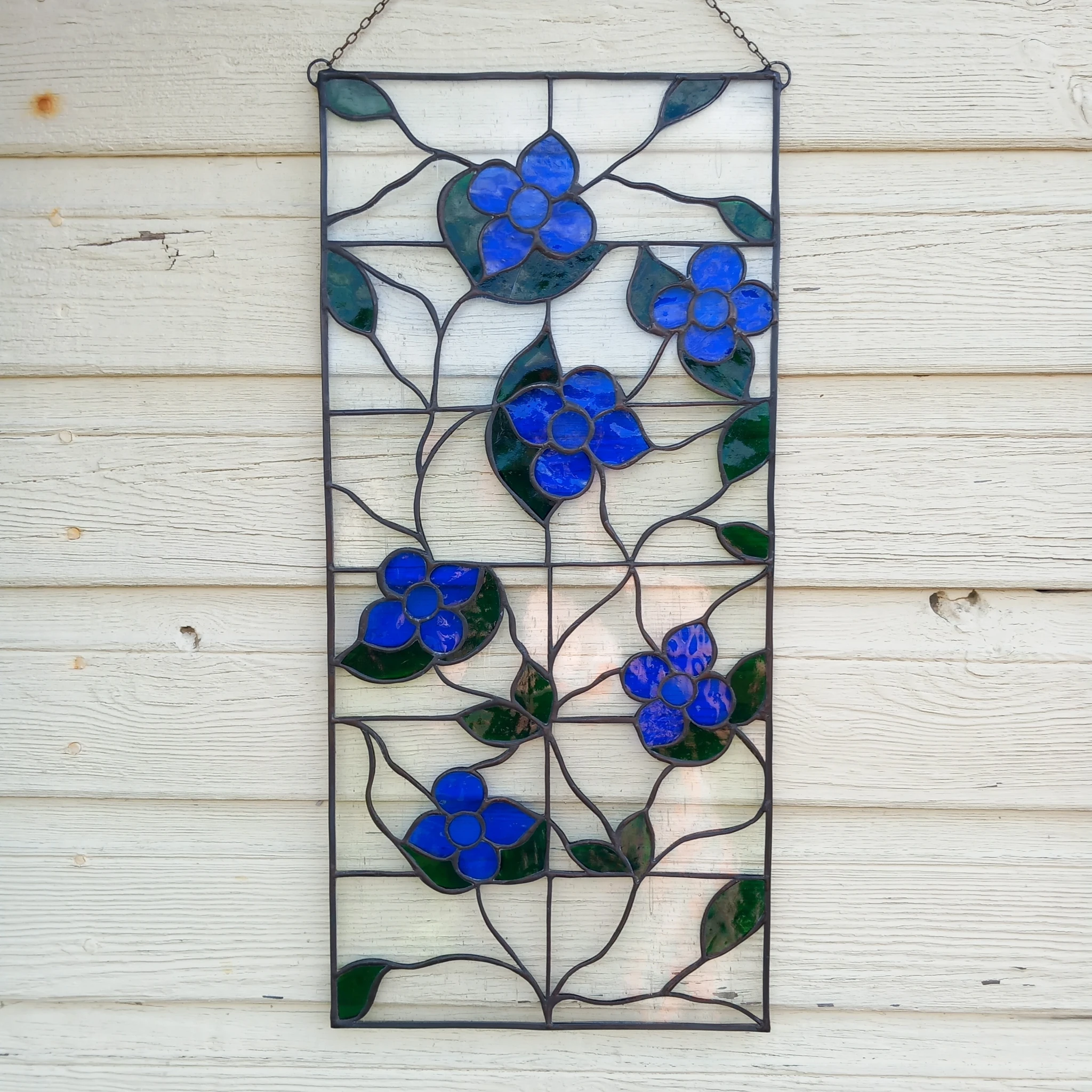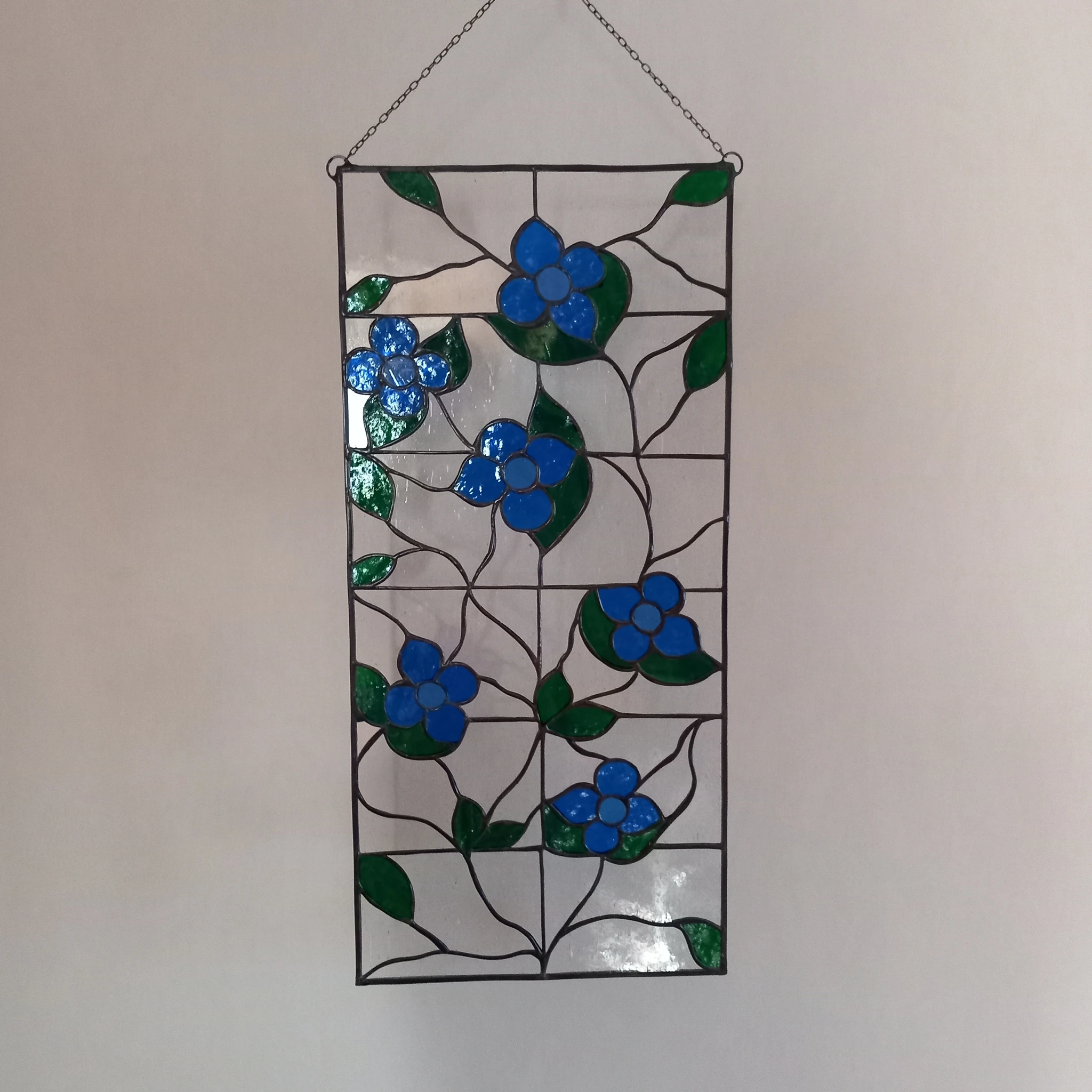 Materjal: värviline klaas, jootetina, must paatina, tinaprofiil, kaasas riputuskett